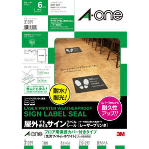 ● エーワンのフロア用サインシートなら確り簡単きれいに作成でき、お客様の作業性と自由なデザイン性を実現できます。業務フロア用で実績のあるカバーフィルムが付いています。● サイズ/A4対応プリンタ/レーザー(カラー・モノクロ)、コピー機(カラー・モノクロ)カラー/ホワイト・光沢材質/ポリエステルフィルム・特殊オレフィンフィルムラベル総厚/0.16mmラベル本体厚/0.08mm面付け/ノーカット1片寸法/210×297mmセット内容/ラベル6枚+透明保護フィルムラベル6枚仕様/レーザープリンタ用・光沢フィルム・ホワイト単位/1冊(6枚入)● ※【返品に関するご注意】開封後はお客様のご都合による返品はお受けできません。