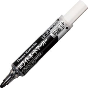 ● 後部プッシュでいつでも濃く書けるホワイトボードマーカー「ノックル」の抗菌仕様。抗菌なので共用しても衛生的。本体軸印刷部分に、抗菌効果を発揮する抗菌剤を配合しています。● 長さ/125mmペン先/中字丸芯インク色/黒インク種類/アルコール系油性顔料種別/使い切り仕様/抗菌(本体軸転写印刷部)機能/プッシュリフレッシュ方式タイプ/直液式線幅/2.1mm寸法/21×21×125mm単位/1本● ※抗菌性とは長時間細菌の増殖を抑制すること。ISO22196に準じた試験において細菌(黄色ブドウ球菌および大腸菌)に対して抗菌性ありと確認。※抗菌効果はありますが特定のウィルスへの効果が確認されたものではありません。