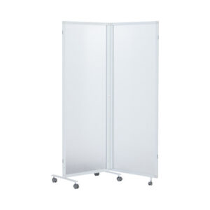 ● 折りたたんで収納できる2連パーティション。キャスター付きで移動も楽々。アイテムどうしを連結できるマグネット付き。● 種別/2連タイプ/ポリカーボネート(半透明)カラー/半透明外寸法/全開時:幅1200(パネル1枚あたり581)×奥行400×高さ1600mm、折たたみ時:幅588×奥行400×高さ1600mmパネル厚さ/5mm(フレーム含む20mm)材質/パネル:ポリカーボネート、フレーム・脚:スチール、キャスター:ナイロン質量/12kg機能/キャスターストッパー機能(2個)、連結部指ばさみ防止機能仕様/フロスト(曇りガラス風)仕上げ、フレームマグネット付き(複数台の連結用)付属工具/スパナ生産国/台湾単位/1台● ※【返品に関するご注意】この商品は組み立てサービス付き家具のため、お客様のご都合による返品はお受けできません。 ●組立サービス付き家具
