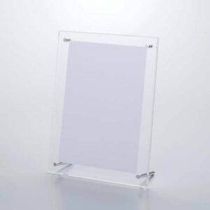● 壁でも卓上でも、どちらでもOKの2way仕様のアクリルフレームです。● サイズ/B5外寸法/307×232mmカード寸法/257×182mm厚さ/表板4mm、裏板2mm材質/アクリル付属品/すべり止め付パイプスタンド、仮留めラベル※箱入り質量/約510g単位/1枚● ※ヨコ置きできます。