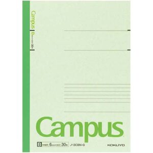 ● コクヨの定番キャンパスノート。独自の原紙基準により快適な書き心地をさらに追求!目印によりノートに線が引きやすい!背にタイトルが書ける!● サイズ/セミB5(6号)種別/B罫カラー/緑寸法(タテ×ヨコ)/252×179mm紙質/上質紙(森林認証紙)製本様式/無線とじ罫内容/中横罫罫/6mm幅行数/35行枚数/30枚規格/JIS規格品単位/1セット(60冊入)●