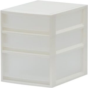 ● シンプルデザインのレターケース。A4クリアファイルもしっかり収納。 汚れが溜まりにくいフラットな天板と、斜めカット外枠。引出しの不意な抜け落ちを防ぐ、2段階ストッパーを採用。● サイズ/A4寸法/幅270×奥行350×高さ330mm引出内寸法/幅220×奥行315×高さ(浅型)70mm・(深型)110mm質量/約1250g種別/浅型2段・深型1段材質/ポリプロピレン機能/引き出しストッパー付き耐荷重/引出1段あたり(浅)約2.2kg、(深)約4.4kg最大積み重ね段数/2段カラー/ホワイト容量/浅型1段あたり約5.4L、深型1段あたり約8.8L引出ストッパー/あり(2段階)単位/1箱(4個入)● ※最大積み重ね可能段数/2段