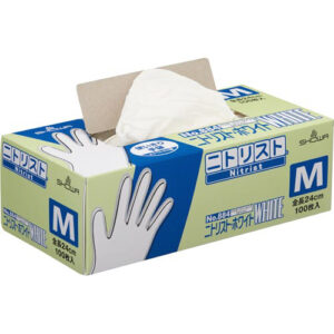 ● 約0.10mmの厚みで破れが気になる方におすすめのニトリルゴム使いきり手袋です。食品衛生法適合。● カラー/ホワイト寸法/全長240mm×中指長さ78mm×掌幅95mm質量/5.3gその他仕様/サイズ:Mその他仕様/材質:合成ゴム(ニトリルゴム)食品衛生法/適合仕様/左右両用、粉無し指先厚さ/未計測掌厚さ/約0.10mm1枚当たりの重量/約5.3g単位/1箱(100枚入)● ※アレルギー反応等により、体質によっては、かゆみ・かぶれ発疹等をおこすことがあります。異常を感じたら使用を中止し、医師に相談してください。※高濃度の薬品や溶剤(ガソリン・ベンジン類)には、使用しないでください。膨潤、浸透することがあります。※熱いものに触れないでください。火傷するおそれがあります。※爪先・刃物や尖ったもの等で傷をつけないようご注意ください。水がしみこむ原因となります。※感電のおそれがあるため、電気作業には使用しないでください。※保管する時には直射日光を避けてください。※本品は使いきりのため、再使用しないで下さい。※【返品に関するご注意】開封後はお客様のご都合による返品はお受けできません。