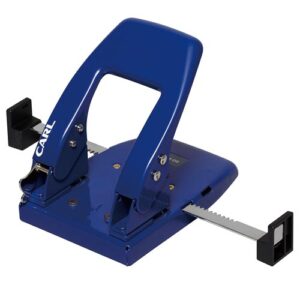 ● 50枚の穴あけが一度にできる2穴パンチです。用紙は大きな台座部で保持できるので安定した穴あけが可能。左右連動するダブルゲージは金属製で折れにくく、用紙を挟み込むだけで簡単に位置合わせができます。● 種別/50枚カラー/ブルー寸法/幅180(ダブルゲージ含む)×奥行159×高さ132mm(ロック時の高さ74mm)機能/ハンドルロック付・ダブルゲージ付(紙幅132ー310mm)、後ろ開き式半透明クズ受け材質/SPCC、PP質量/825g穴開け枚数/約50枚穴径/6mm(80mmピッチ)穿孔奥行/12mm穴数/2穴穴奥行/12mm穴間隔/80mmサイドゲージ/あり(紙幅132mmから310mmまでに対応)ハンドルストッパー/あり単位/1個●