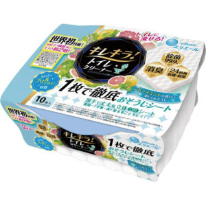 ● 世界初技術セルロースナノファイバー配合。丈夫でへこたれない!独自のエンボスパターンでこびりついた汚れをかきとるトイレ用お掃除シートです。● 種別/本体香り/シトラスミントシート寸法/約230×330mm材質/シート:パルプ(セルロースナノファイバー配合)成分/界面活性剤、グリコールエーテル、安定化剤、除菌剤、香料液性/弱酸性入数/1個あたり10枚入仕様/本体機能/ミシン目入カラー/ホワイト付属品/気密性の高い容器本体サイズ/150×120×65mm単位/1個● ※すべての菌を除去できるわけではありません。※トイレの詰まりを避けるため1枚ずつ大の水量で流してください。※壁紙はシミになる場合がありますので、目立たない部分でためし拭きしてからご使用ください。※ペンキやニス、ワックスの塗装面、白木、ガラス面、銅、しんちゅう製品などには使用しないでください。※多量の水や、他の洗剤との併用はしないでください。紙の強度が落ちることがあります。