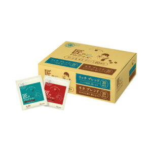 ● コーヒー鑑定士が厳選したコーヒー豆を使用。コーヒー豆をひいた直後に密封パック。左右にやさしく引っ張るだけで注ぎ口が開くクイックオープン。気分に合わせて好きな味が選べるアソートタイプ。● 種別/レギュラーコーヒー(粉)セット内容/リッチブレンド(30袋)、モカブレンド(30袋)内容量/9g×60P包装形態/個包装抽出量/180ml賞味期限/360日その他仕様/生豆生産国名:ブラジル・コロンビア他単位/1箱(60P入)● ※開封時、強く引っ張るとコーヒーの粉が跳ねる場合がありますのでご注意ください。※熱湯による火傷にご注意ください。※フックにコーヒーの油分が染み出て変色することがありますが、品質には問題ありません。※都合により、パッケージ及び内容量、生産地などが予告なく変更される場合があります。※【返品に関するご注意】この商品はお客様のご都合による返品はお受けできません。