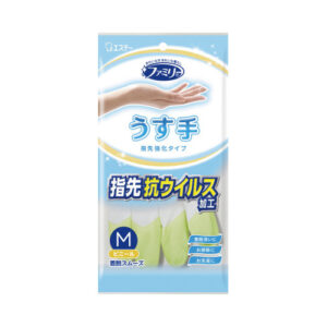 【商品の特徴】 手袋全体の抗菌効果に加え指先は抗ウイルス加工。指先を強化しているので、やぶれにくく、丈夫です。うす手タイプなので細かな作業に適しています。 サイズ/M寸法/全長300×中指長さ74×掌幅100mm掌周り/200mm全長/300mm中指長さ/74mm材質/PVC(非フタル酸エステル系可塑剤)カラー/グリーン仕様/薄手タイプ生産国/台湾単位/1セット(10双入) エステー ※手袋のサイズは、素材の特性上、数mmの差が出ることがあります。※この商品は、商品デザイン、パッケージが予告なく変更される場合があります。