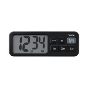 【商品の特徴】 抗菌仕様(SIAA認証)で清潔に使える「でか見え」タイマー。「1分」「3分」「5分」「秒」のボタンで設定が便利。見やすい文字高30mmの大型表示。押しやすい大きなボタン。 寸法/約幅134×高さ48×奥行17mm外寸法/約幅99×高さ179×奥行19mm画面寸法/文字高30mm質量/約73g(電池含む)材質/ABSカラー/マットブラック仕様/タイマー機能:カウントダウン方式、設定時間:最大99分59秒(1秒単位)、アラーム鳴動時間:約30秒、電源:CR2032コイン形リチウム電池×1個、電池寿命:約1年(1日1回30秒間アラームを鳴らした場合)、使用温度範囲:0−40度付属品/取扱説明書(保証書付)、お試し用電池保証期間/1年単位/1個 タニタ ※【返品に関するご注意】お客様のご都合による返品はお受けできません。