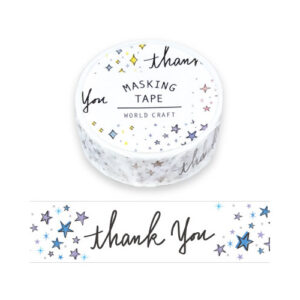 【商品の特徴】 ラッピングの定番サンキュー柄です。 寸法/幅15mm×長さ7m粘着剤/アクリル系粘着剤材質/和紙単位/1巻 ワールドクラフト